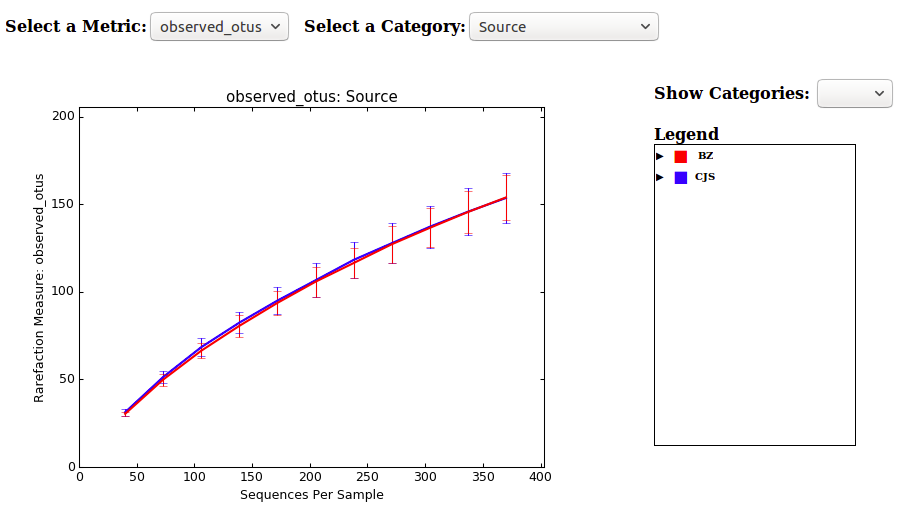 First we are going to view the rarefaction curves in a web browser by opening the resulting HTML file to view the plots: